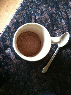 1. Pour Flour, Sugar, and Cocoa into mug. Mix Them together